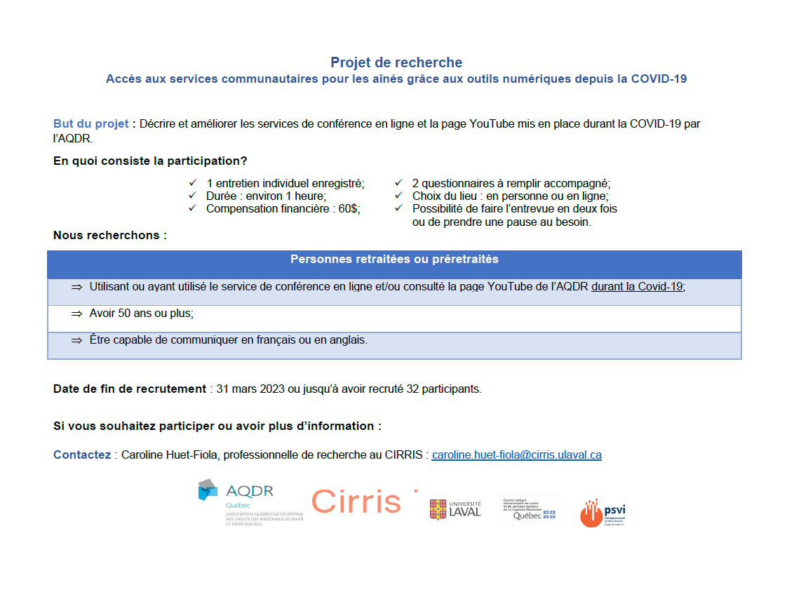 Dans le cadre des élections municipales, le ROP03 et l'AQDR Québec vous invitent à participer à un débat électoral sur la place des personnes ainées et des personnes handicapées dans la Ville de Québec :…